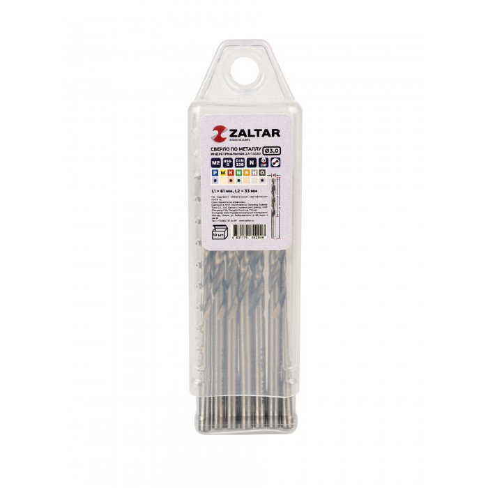 Комплект свёрл по металлу индустриальных, 10 шт, DIN 338, HSS-G, Тип N, 5xD, O3.00 мм (ZA-73030-S10)