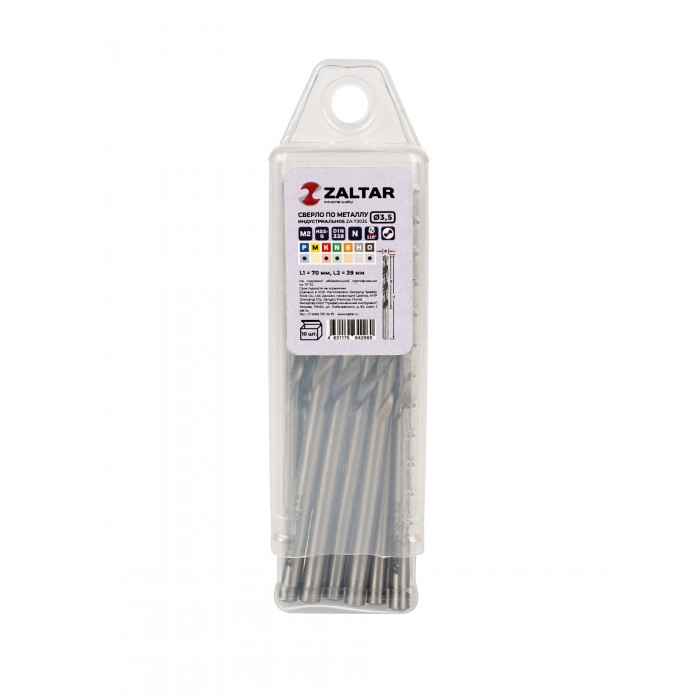 Комплект свёрл по металлу индустриальных, 10 шт, DIN 338, HSS-G, Тип N, 5xD, O3.50 мм (ZA-73035-S10)