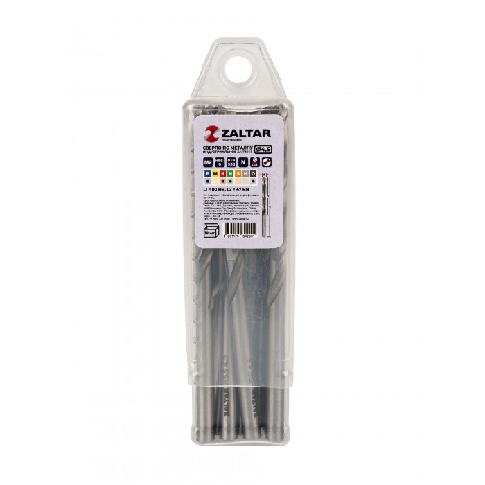 Комплект свёрл по металлу индустриальных, 10 шт, DIN 338, HSS-G, Тип N, 5xD, O4.50 мм (ZA-73045-S10)