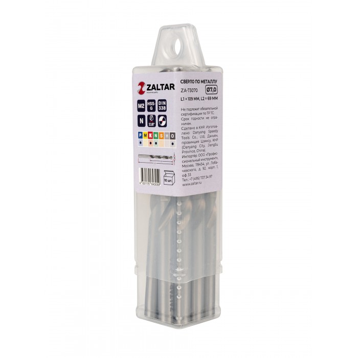Комплект свёрл по металлу индустриальных, 10 шт, DIN 338, HSS-G, Тип N, 5xD, O7.00 мм (ZA-73070-S10)