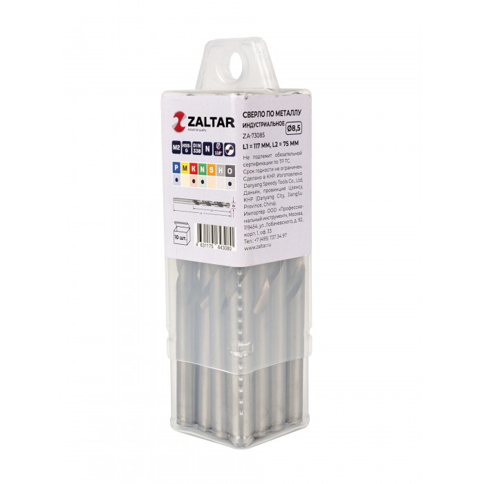 Комплект свёрл по металлу индустриальных, 10 шт, DIN 338, HSS-G, Тип N, 5xD, O8.50 мм (ZA-73085-S10)