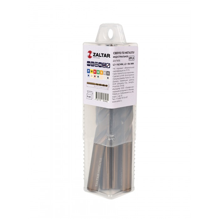 Комплект свёрл по металлу индустриальных, 5 шт, DIN 338, HSS-E Co5, Тип VA, 5xD, O11.50 мм (ZA-74115-S5)