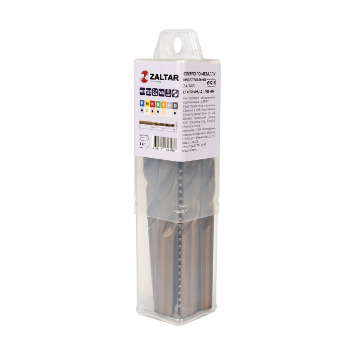 Комплект свёрл по металлу индустриальных, 5 шт, DIN 338, HSS-E Co5, Тип VA, 5xD, O12.50 мм (ZA-74125-S5)