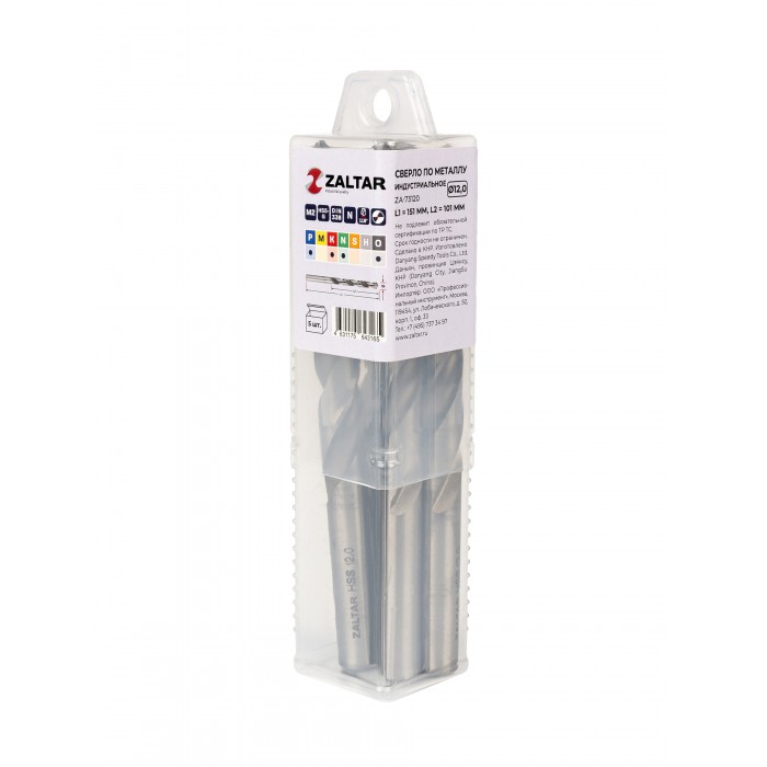 Комплект свёрл по металлу индустриальных, 5 шт, DIN 338, HSS-G, Тип N, 5xD, O12.00 мм (ZA-73120-S5)