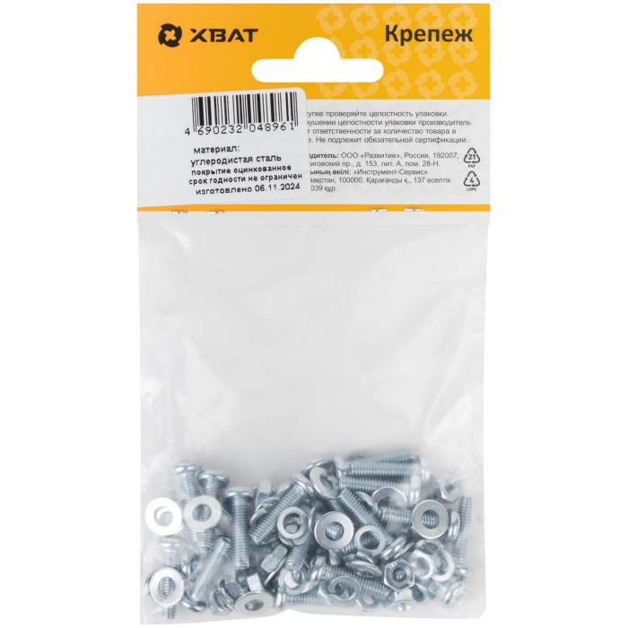 Комплект: Винт DIN7985 4х16, с гайкой М4 DIN934, шайбой М 4 DIN125, шайбой М 4 DIN127 (фасовка 25шт.) (24821-3)