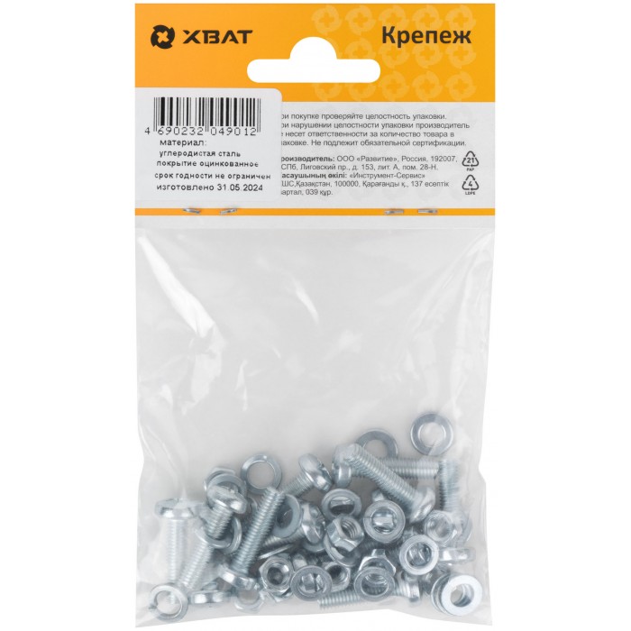 Комплект: Винт DIN7985 5х20, с гайкой М5 DIN934, шайбой М 5 DIN125, шайбой М 5 DIN127 (фасовка 13шт.) (24826-3)