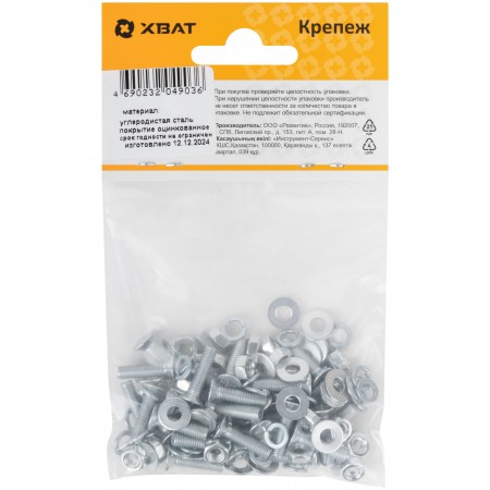 Комплект: Винт DIN965 4х16, с гайкой М4 DIN934, шайбой М 4 DIN125, шайбой М 4 DIN127 (фасовка 30шт.) (24831-3)