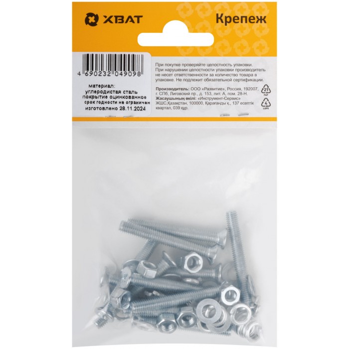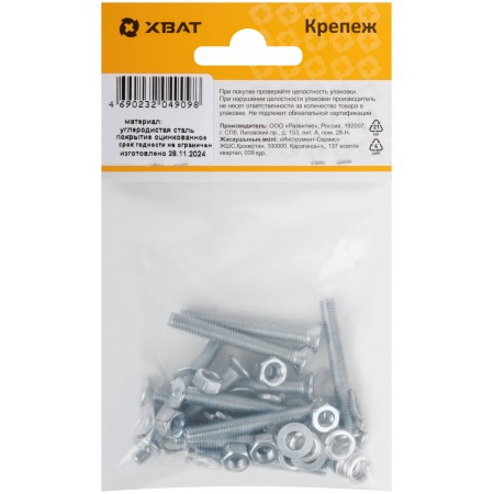 Комплект: Винт DIN965 5х40, с гайкой М5 DIN934, шайбой М 5 DIN125, шайбой М 5 DIN127 (фасовка 12шт.) (24837-3)