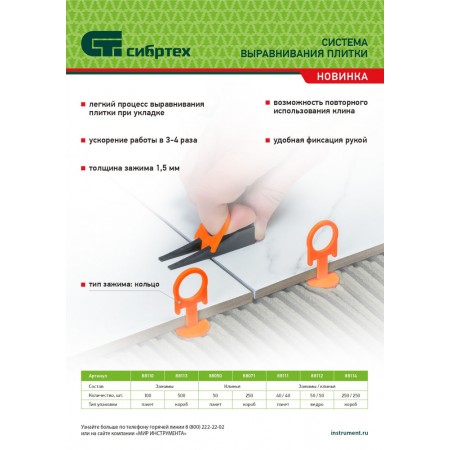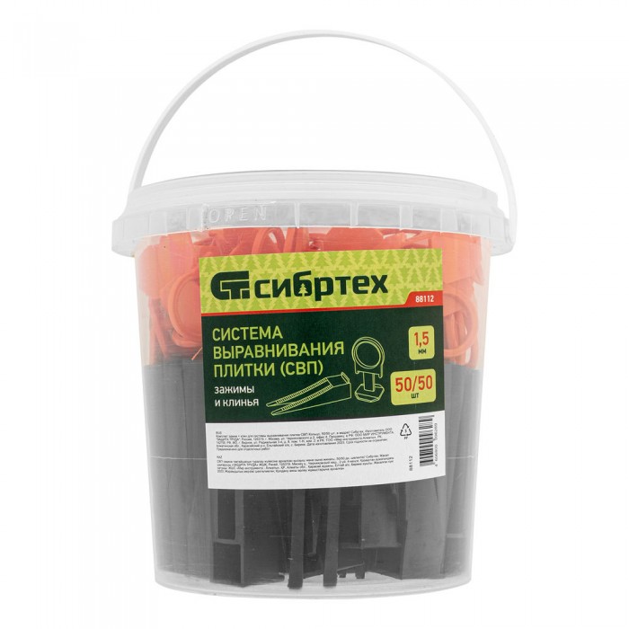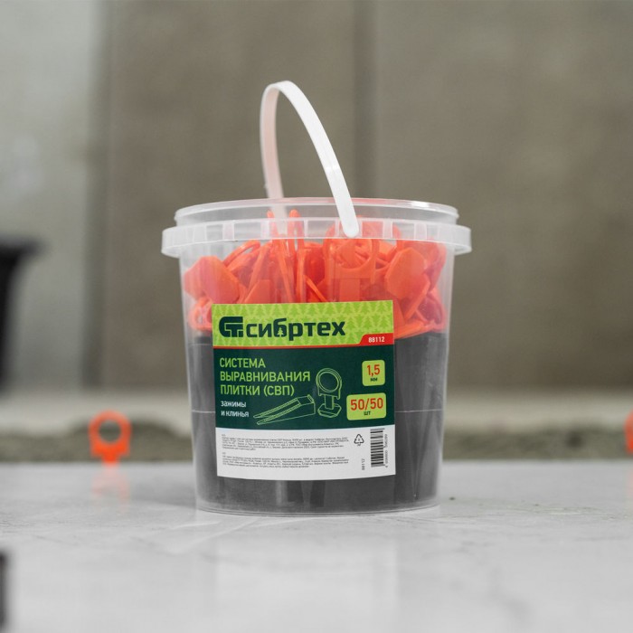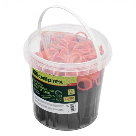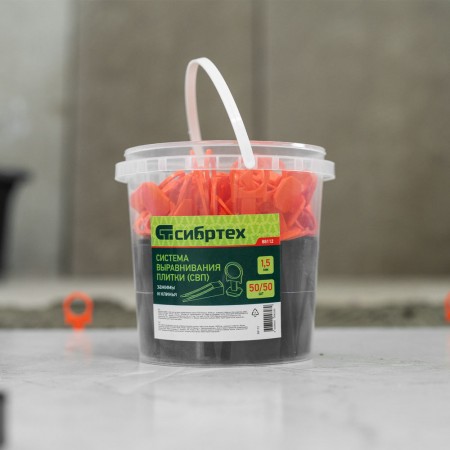 Комплект зажим + клин для системы выравнивания плитки СВП Кольцо, 50/50 шт. в ведре Сибртех (88112)