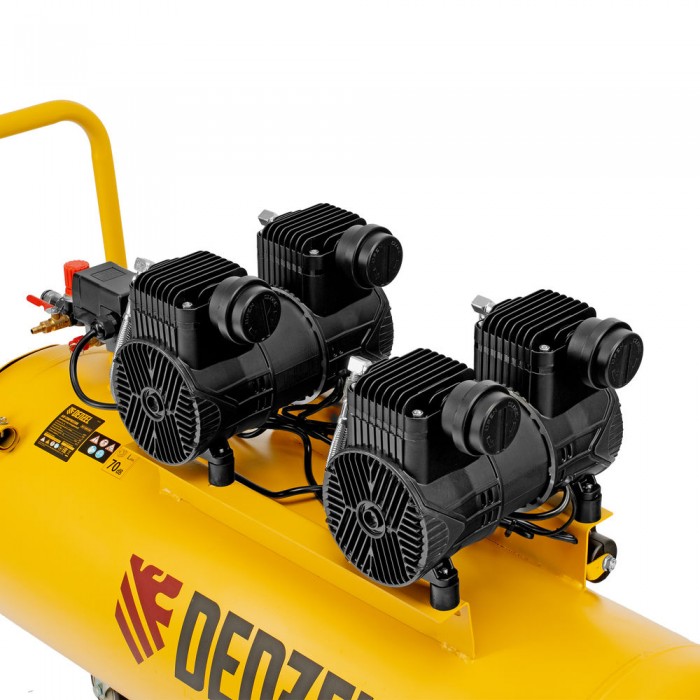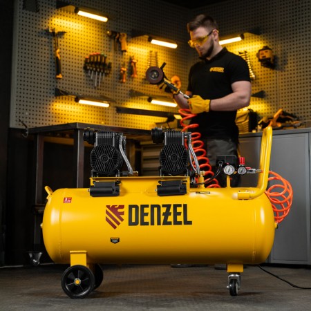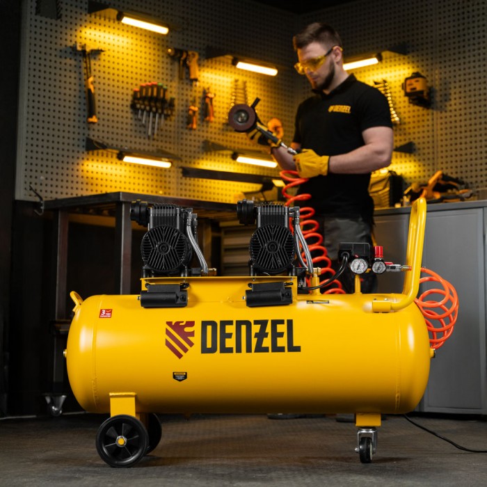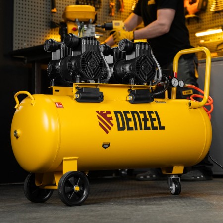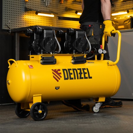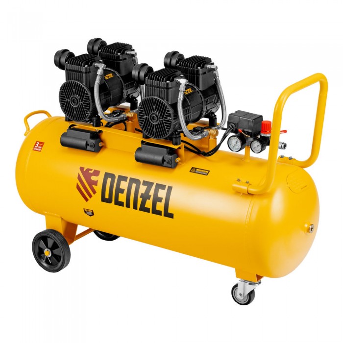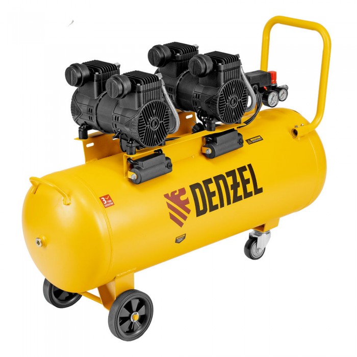 Компрессор безмасл. малошумный DLP-3000/100, 3 кВт, 2х1,5 кВт,100 л, 2850 об/мин,500 л/мин Denzel (58145)