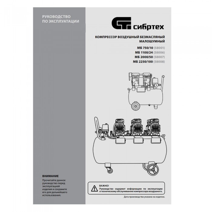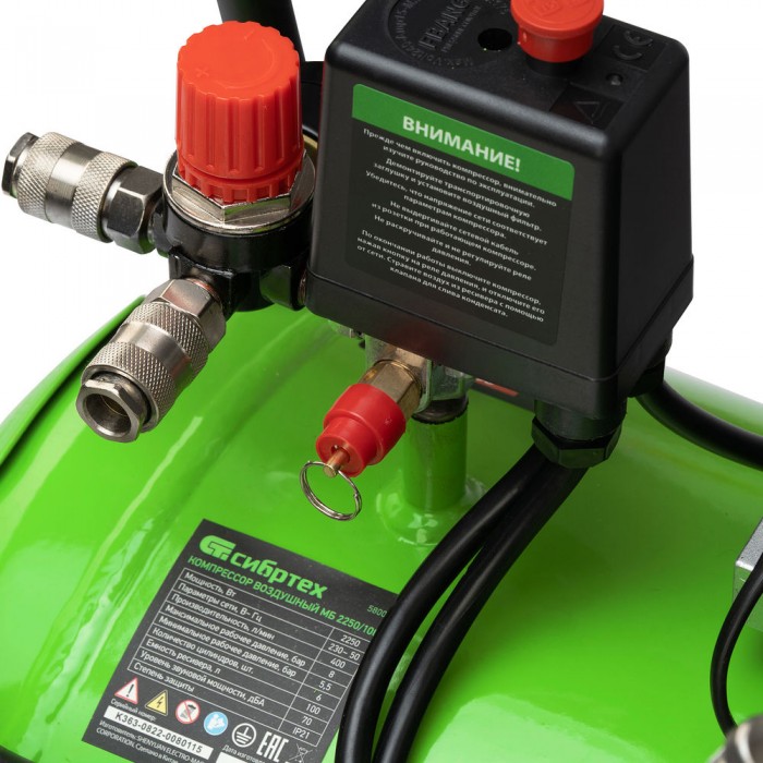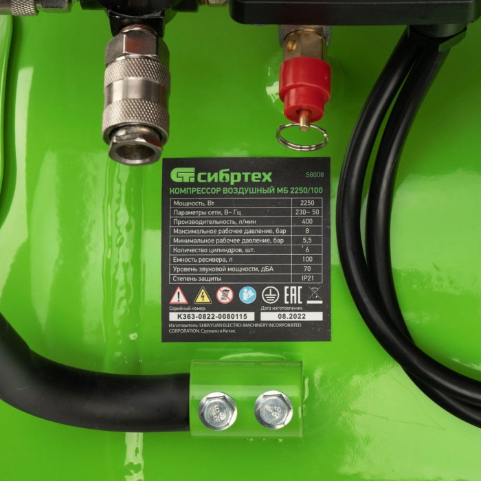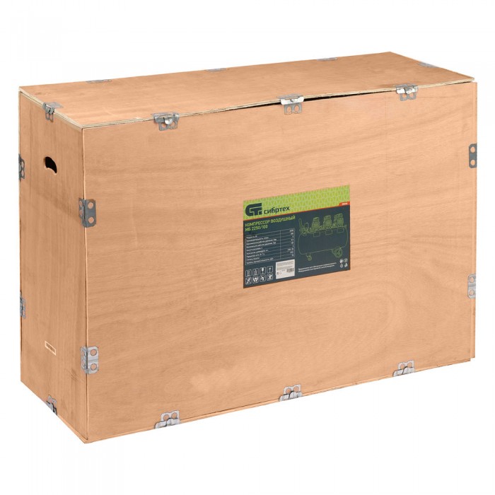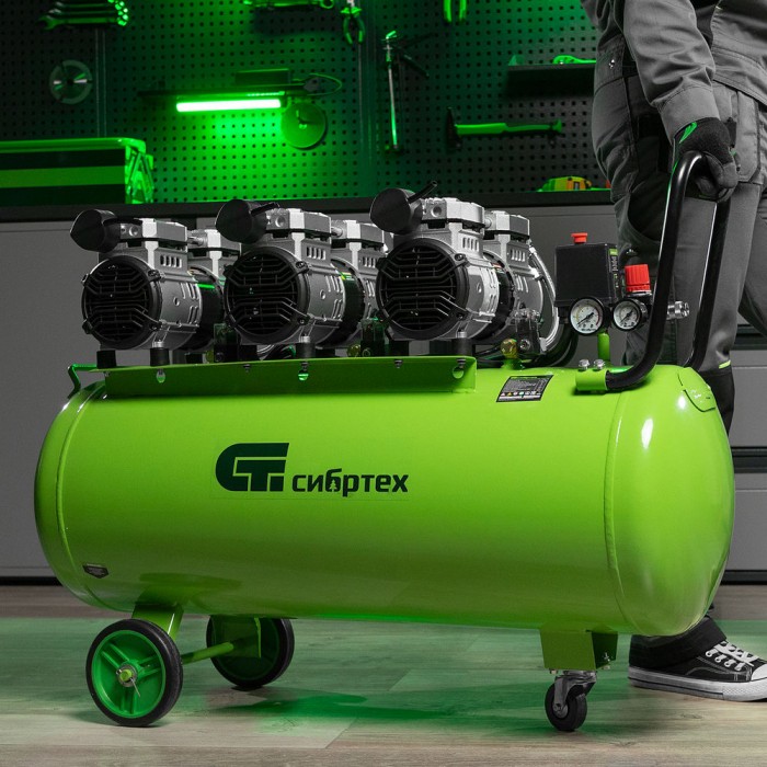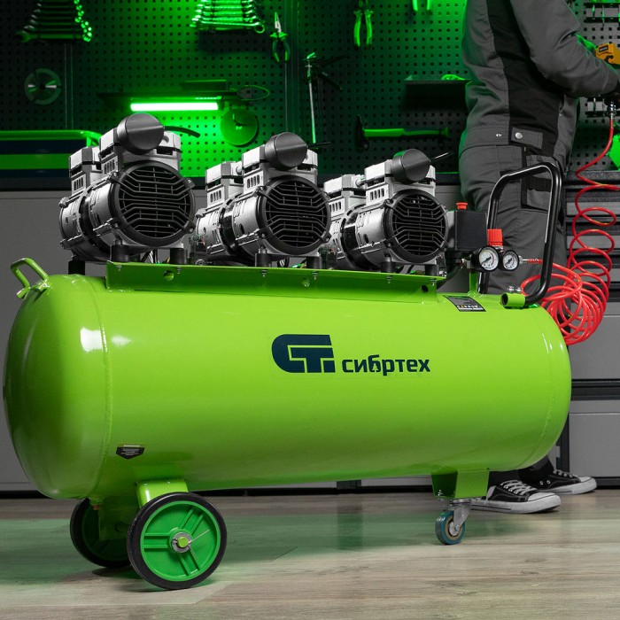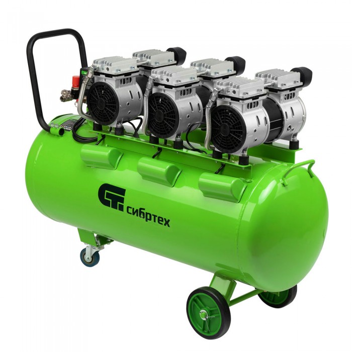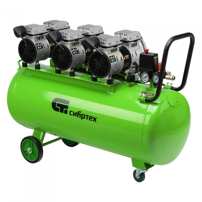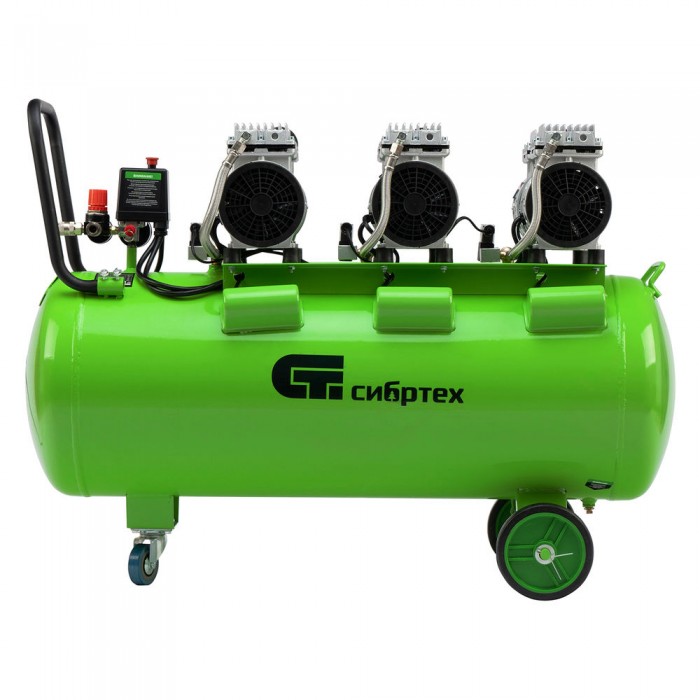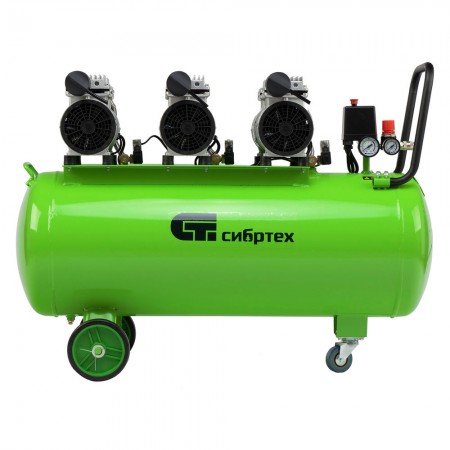 Компрессор безмаслянный малошумный МБ 2250/100, 2250 Вт, 100л, 400 л/мин Сибртех (58008)