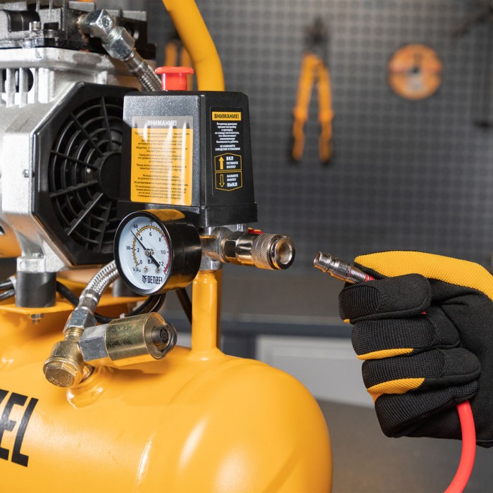 Компрессор DLS650/10 безмаслянный малошумный 650 Вт, 120 л/мин, ресивер 10 л Denzel (58021)