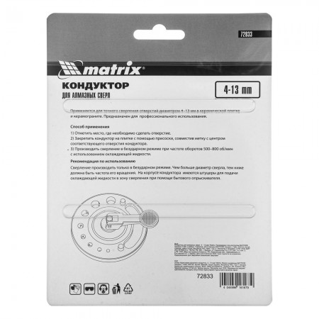 Кондуктор для алмазных сверл 4-13 мм Matrix (72833)