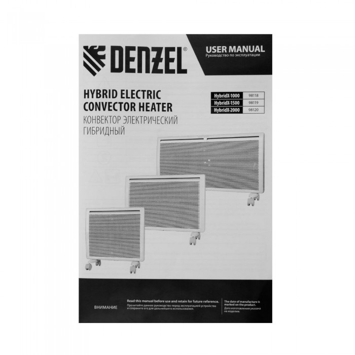 Конвектор гибридный электрический HybridX-1500, ИК нагреватель, цифровой термостат Denzel (98119)