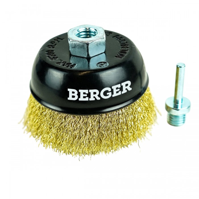 Кордщётка чашеобразная (латунированная сталь 0.3 мм, диаметр 100 мм, гайка М14 + хвостовик 6 мм) BERGER BG1741