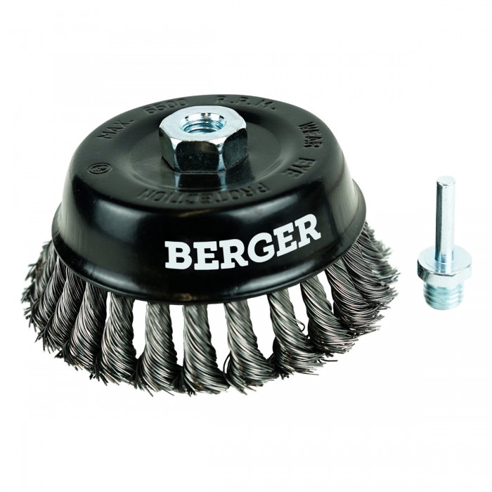 Кордщётка чашеобразная (витая оцинкованная сталь 0.5 мм, диаметр 125 мм, гайка М14 + хвостовик 6 мм) BERGER BG1745