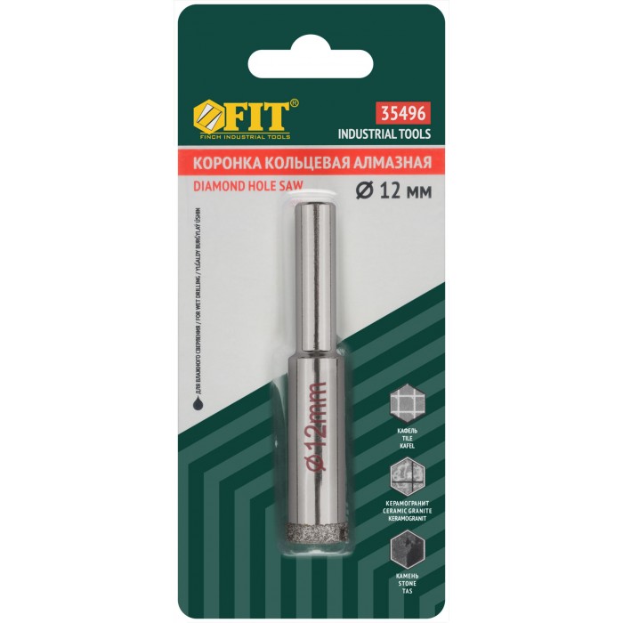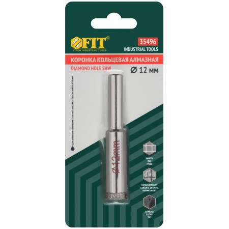 Коронка алмазная кольцевая для керамогранита / мрамора 12 мм (35496)