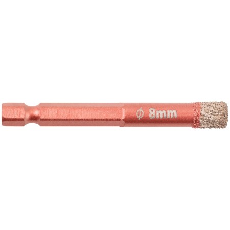 Коронка с шестигранным хвостовиком 1/4'' используется совместно с шуруповертом или дрелью. Применяется для сверления керамогранита, мрамора, кирпича, плитки, стекла, дерева. Специальный охлаждающий материал значительно увеличивает ресурс коронок. При изготовлении используется высокотемпературный вакуумный метод спекания. Материал: инструментальная сталь, технические алмазы, воск. Упаковка: блистер.