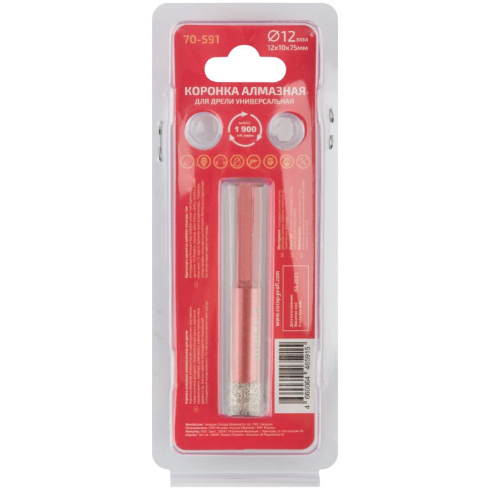 Коронка алмазная универсальная для дрели CUTOP Special 12x10x75мм (70-591)