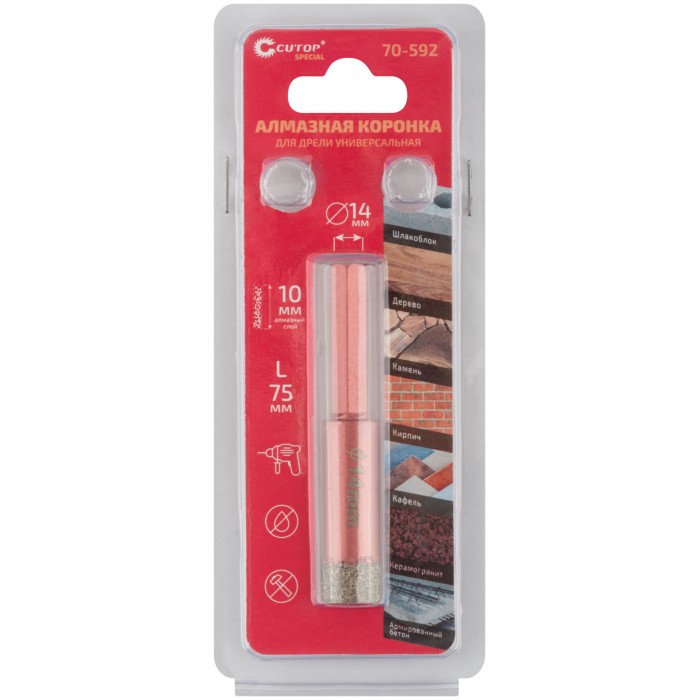 Коронка алмазная универсальная для дрели CUTOP Special 14x10x75мм (70-592)