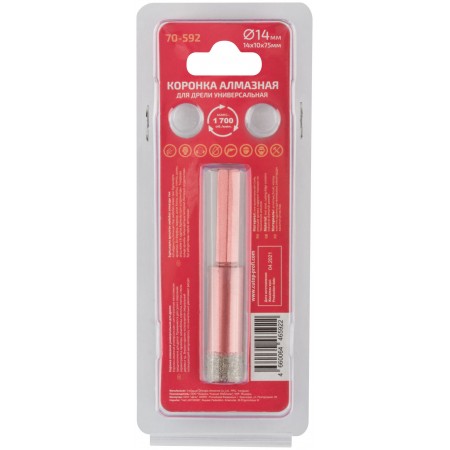 Коронка алмазная универсальная с шестигранным хвостовиком предназначена для дрели. Применяется для сухого сверления керамогранита, мрамора, шлакоблока, кирпича, плитки, стекла, дерева и т д. Внутри коронок используется специальный охлаждающий материал(воск), что значительно увеличивает ресурс. Материал: инструментальная сталь, технические алмазы, воск. Упаковка: блистер.