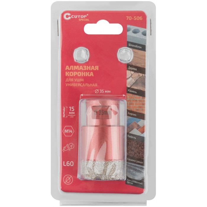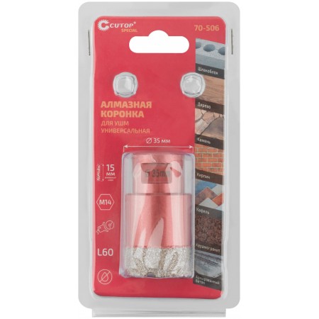 Коронка алмазная универсальная для УШМ CUTOP Special 35 х 15 х М14 х 60 мм (70-506)