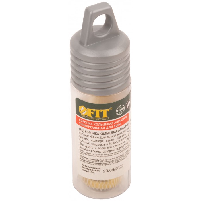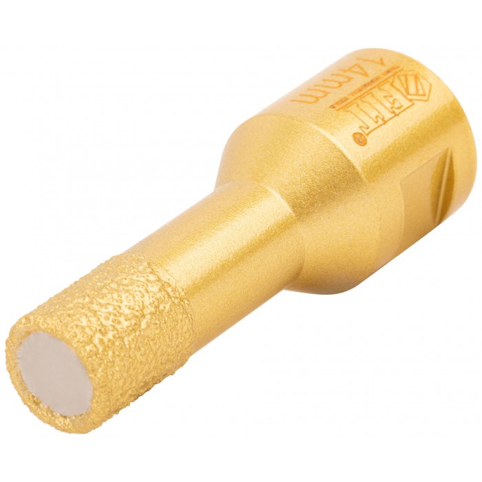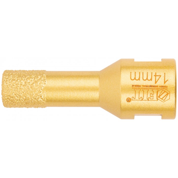Профи. Хвостовик М14. Для вырезания круговых отверстий в керамограните, кафельной плитке, бетоне, граните, мраморе, кирпиче, стекле. Сухое и влажное сверление. Глубина пропила 40 мм. Для углошлифовальных машин. Технология вакуумного спекания обеспечивает большую твердость и более длительный срок службы коронки. Внутри коронок 16332-16334 находится воск для охлаждения при работе. Материал: инструментальная сталь, режущая кромка содержит порошок из технических алмазов. Упаковка: пластиковая туба.