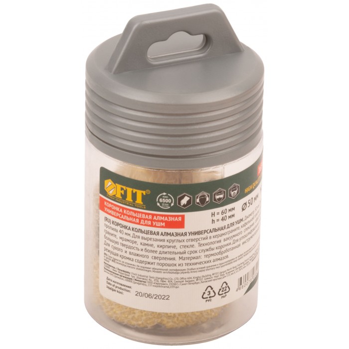 Коронка кольцевая для УШМ, М14, по керамограниту, камню и кафелю алмазная, вакуумное спекание 50х60 мм (16347)