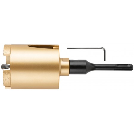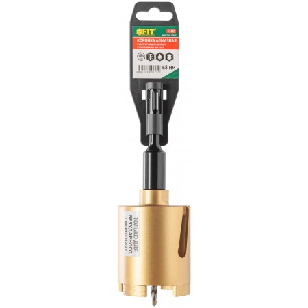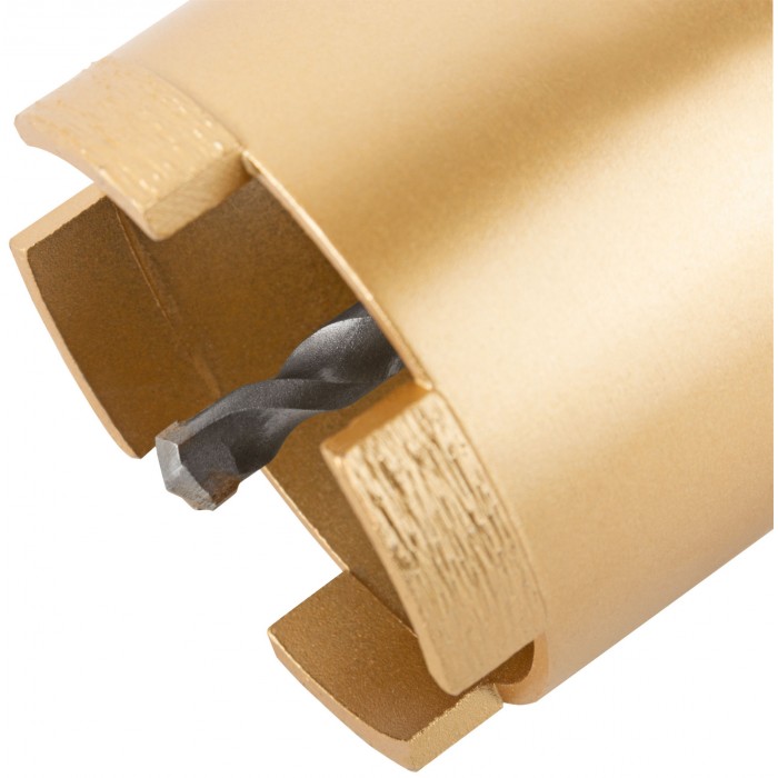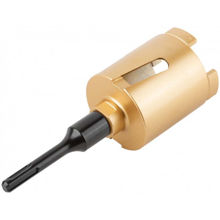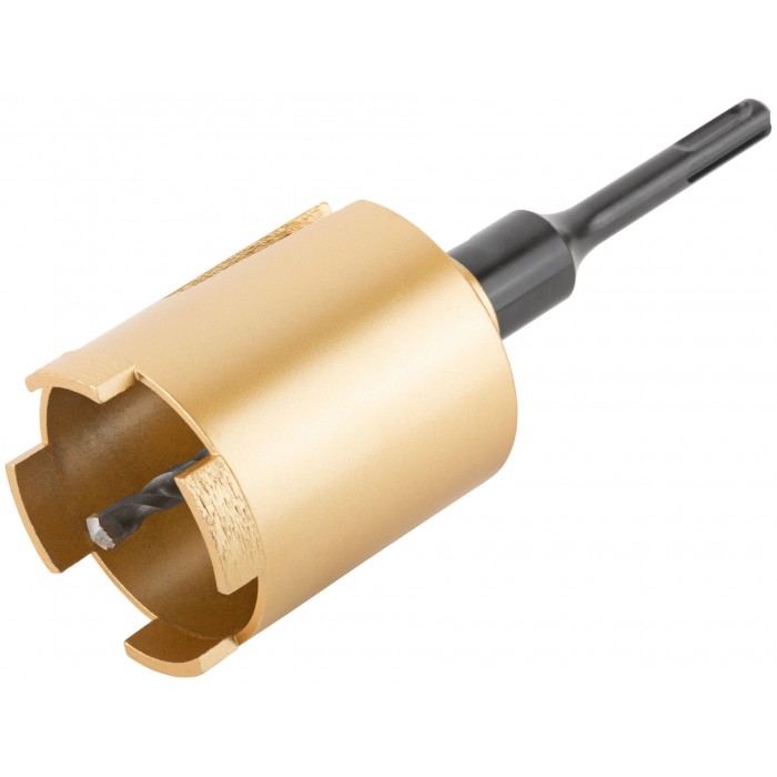 Коронка алмазная с центрирующим сверлом и хвостовиком SDS-PLUS. Для безударного сверления отверстий под монтажные коробки в бетоне и кирпиче. Для работы с водяным охлаждением. Материал: корпус из инструментальной стали, хвостовик и центрирующее сверло из легированной стали, режущая кромка содержит порошок из технических алмазов. Упаковка: пластиковый подвес.