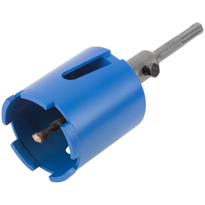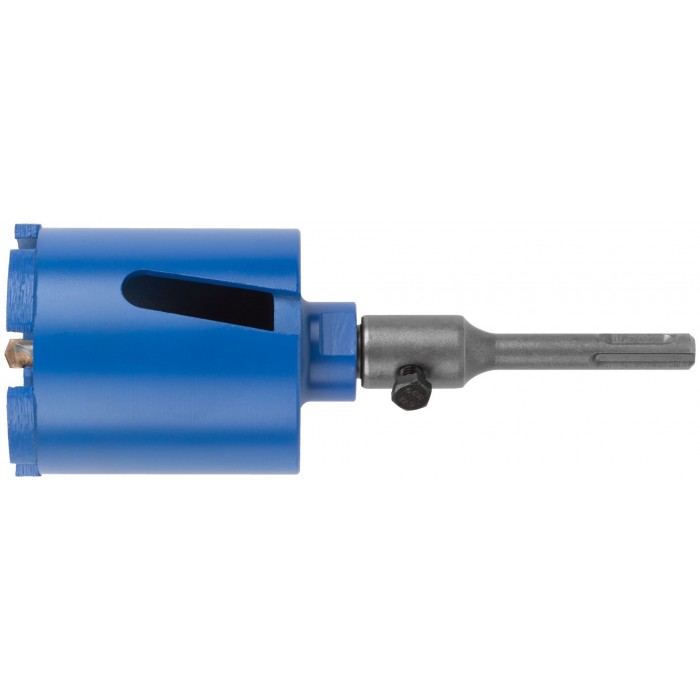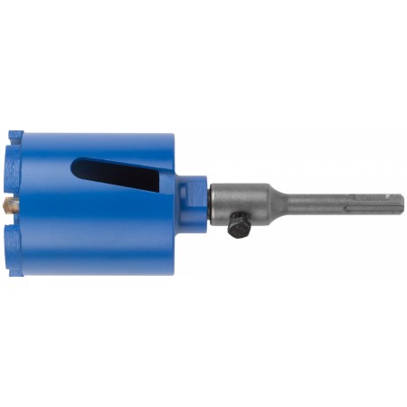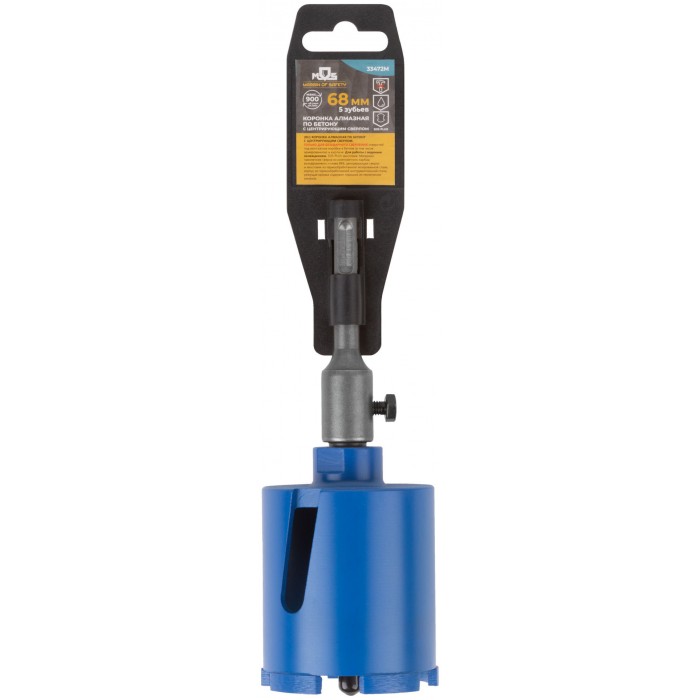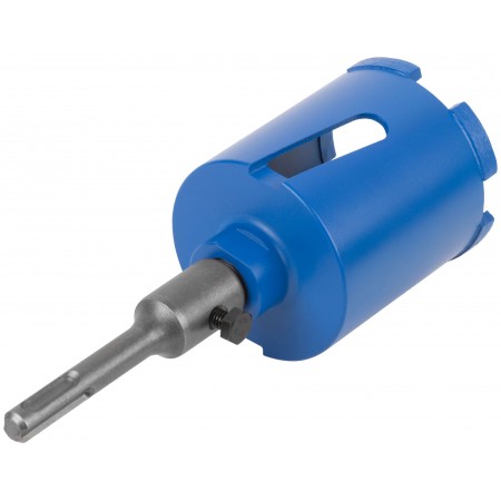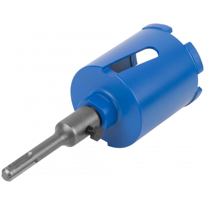 Коронка алмазная с центрирующим сверлом 8 мм и хвостовиком SDS-PLUS. Для безударного сверления отверстий под монтажные коробки в бетоне (в том числе армированном) и кирпиче. Для работы с водяным охлаждением. Материал: корпус из инструментальной стали, хвостовик и центрирующее сверло из легированной стали, наконечник сверла из карбида вольфрама, режущая кромка содержит порошок из технических алмазов. Упаковка: пластиковый подвес.