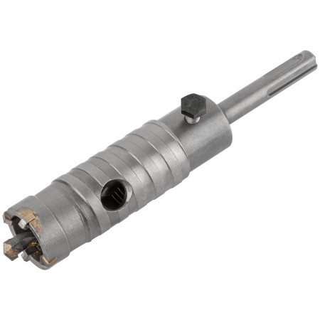 Хвостовик 110 мм. В сборе. Для перфоратора. Для ударного сверления отверстий в бетонных, кирпичных и каменных стенах. Материал: хвостовик и центрирующее сверло легированная инструментальная сталь с добавлением хрома; корпус инструментальная сталь; твердосплавные резцы из карбида вольфрама. Упаковка: пластиковый подвес.