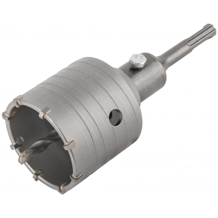 Хвостовик 110 мм. В сборе. Для перфоратора. Для ударного сверления отверстий в бетонных, кирпичных и каменных стенах. Материал: хвостовик и центрирующее сверло легированная инструментальная сталь с добавлением хрома; корпус инструментальная сталь; твердосплавные резцы из карбида вольфрама. Упаковка: пластиковый подвес.