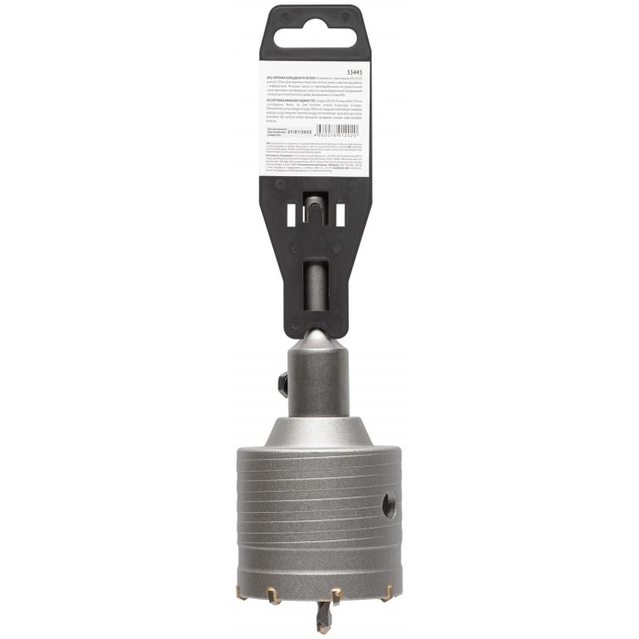Хвостовик 110 мм. В сборе. Для перфоратора. Для ударного сверления отверстий в бетонных, кирпичных и каменных стенах. Материал: хвостовик и центрирующее сверло легированная инструментальная сталь с добавлением хрома; корпус инструментальная сталь; твердосплавные резцы из карбида вольфрама. Упаковка: пластиковый подвес.