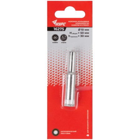 Коронка кольцевая по кафелю и стеклу алмазная 10х50 мм (16275)