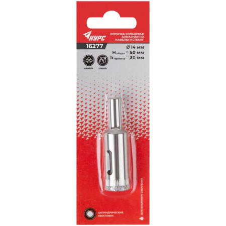 Коронка кольцевая по кафелю и стеклу алмазная 14х50 мм (16277)