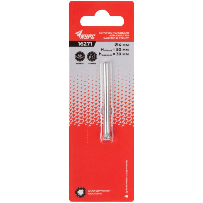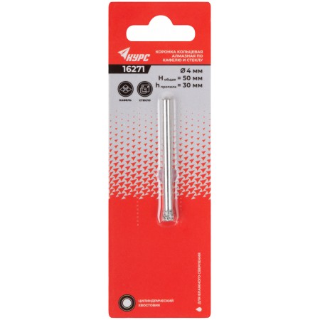 Коронка кольцевая по кафелю и стеклу алмазная 4х50 мм (16271)