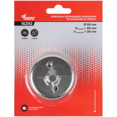 Коронка кольцевая по кафелю и стеклу алмазная 50х50 мм (16292)