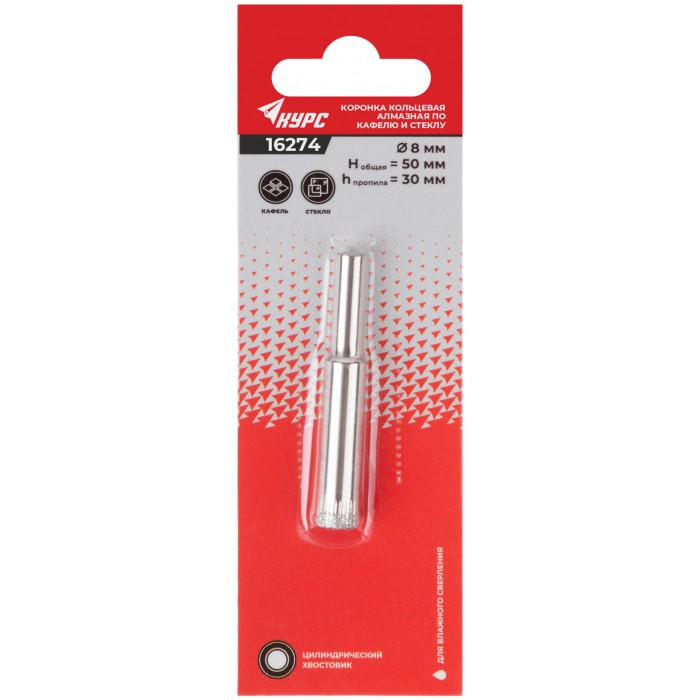Коронка кольцевая по кафелю и стеклу алмазная 8х50 мм (16274)