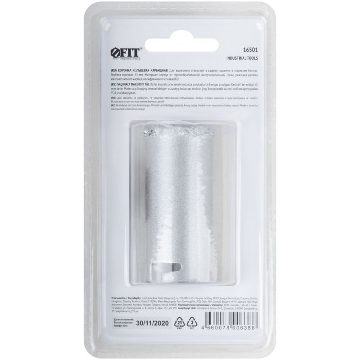 Карбидная. Для вырезания отверстий в кафеле, мягком кирпиче, пористом бетоне. Глубина пропила 55 мм. Материал: инструментальная сталь, режущая кромка из твердосплавного карбид-вольфрамового сплава ВК8.