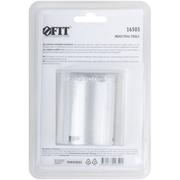 Карбидная. Для вырезания отверстий в кафеле, мягком кирпиче, пористом бетоне. Глубина пропила 55 мм. Материал: инструментальная сталь, режущая кромка из твердосплавного карбид-вольфрамового сплава ВК8.