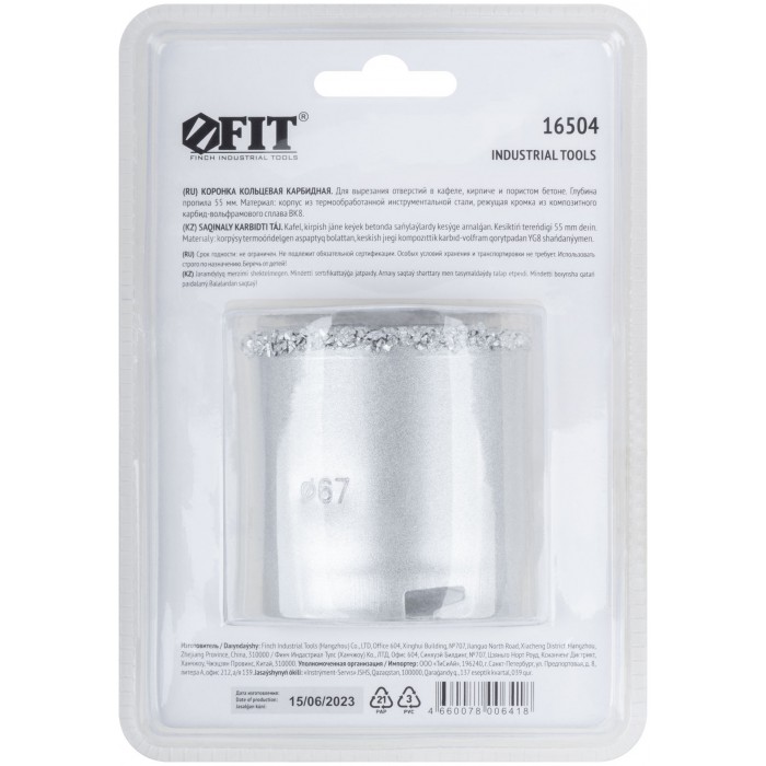 Коронка кольцевая по кафелю карбидная 67 мм (16504)