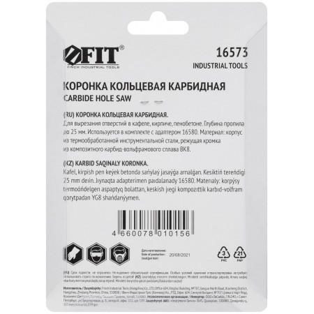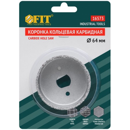 Для вырезания отверстий в кафеле, кирпиче и пористом бетоне. Глубина пропила до 25 мм. Используются в комплекте с адаптером 16579 или 16580. Материал: инструментальная сталь, режущая кромка из твердосплавного карбид-вольфрамового сплава ВК8. Упаковка: блистер.