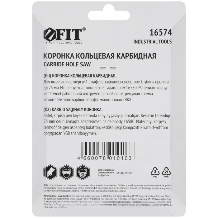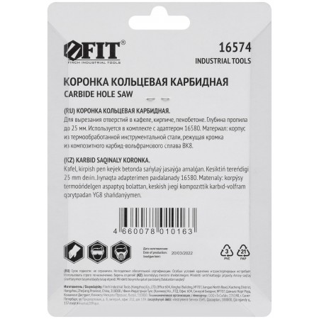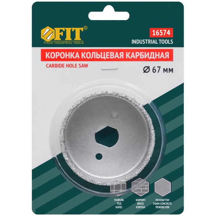 Для вырезания отверстий в кафеле, кирпиче и пористом бетоне. Глубина пропила до 25 мм. Используются в комплекте с адаптером 16579 или 16580. Материал: инструментальная сталь, режущая кромка из твердосплавного карбид-вольфрамового сплава ВК8. Упаковка: блистер.