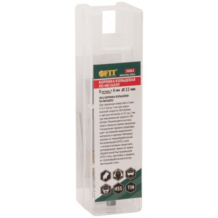 Коронка кольцевая по металлу, HSS сталь, титановое покрытие 22 мм (36862)
