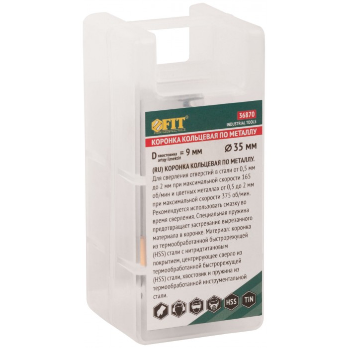 Коронка кольцевая по металлу, HSS сталь, титановое покрытие 35 мм (36870)