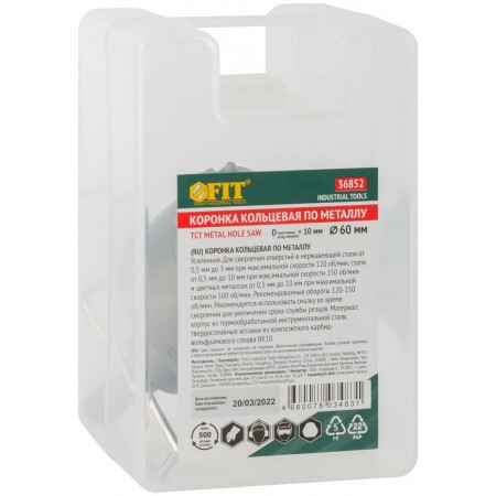 Коронка кольцевая с карбидными вставками Профи (для отверстий в нержавеющей стали) 60 мм (36852)