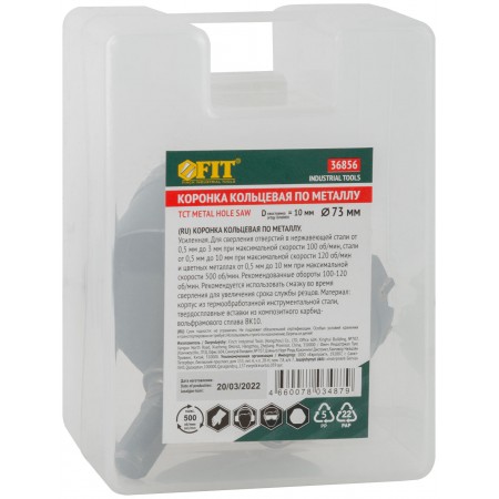 Коронка кольцевая с карбидными вставками Профи (для отверстий в нержавеющей стали) 73 мм (36856)