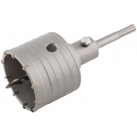 Коронка по бетону SDS-PLUS для профессионального использования. Хвостовик 100 мм. Предназначен для сверления отверстий в бетоне, камне и кирпиче. Материал: хром-молибденовая сталь, карбидная вставка.