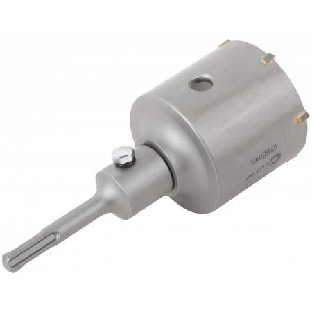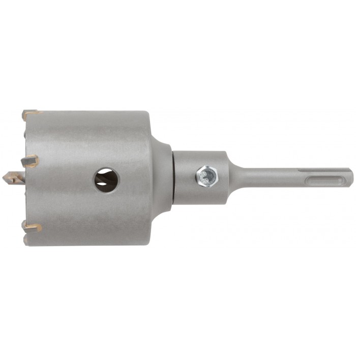 Предназначена для ударного сверления в кирпиче, камне, бетоне, граните. Максимальная глубина сверления — 50 мм. Сверло для центрования с твердосплавным наконечником. Посадочное отверстие коронки — М22. Режущие элементы представляют собой твердосплавные резцы, изготовленные с добавлением карбида вольфрама. Тип хвостовика: SDS-Plus. Материал: инструментальная сталь.