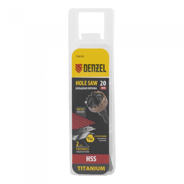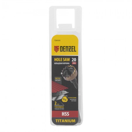 Коронка по металлу HSS, 20 мм, нитридтитановое покрытие Denzel (724101)